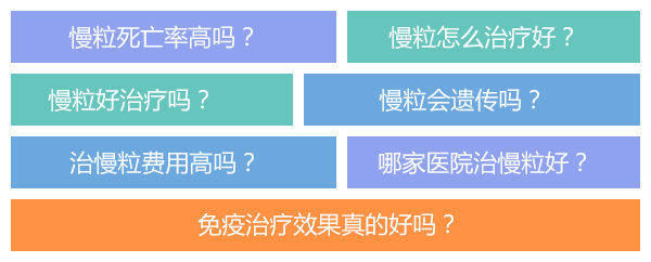 【患者必读】慢粒病情发展较急性白血病缓慢,只要及时治疗就能有效控制。患者确诊后一定要重视病情,积极寻找科学的治疗方法,及早把病魔扼杀在摇篮里。