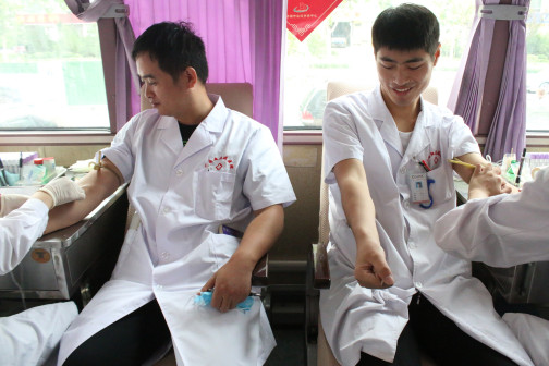 上午9点,献血车来到济南血液病医院急诊楼前,前来献血的医生、护士、患者家属以及其他参与献血的人们自发的开始在献血车前排起了队伍。排队等待、填表登记、上车检验、采前核对、消毒抽血、压迫止血……每一个步骤都井然有序。医院领导、病区医生、值班护士,甚至医院的保安大叔、后勤的保洁阿姨都纷纷前来献血,更有路边经过的路人,自发来到献血车前,准备为需要的病人献上自己滚烫的热血。