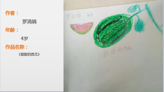 这位画《甜甜的西瓜》的罗涓娟小朋友是一位血小板减少小患者,她在作品中描述道“西瓜甜甜的,我夏天最喜欢吃了,可是妈妈每天只让我吃一点点”。从话语中我们可以感受到小朋友是真的喜欢吃西瓜,也是真的对妈妈有一点不理解,但是我们更多的感受到的是妈妈对涓娟小朋友深切的爱。可喜可贺的是涓娟小朋友已经在济南血液病医院病情得到完全缓解,康复出院。