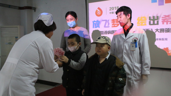 王凤云主任为朱博涛小患者颁发一等奖,500元现金