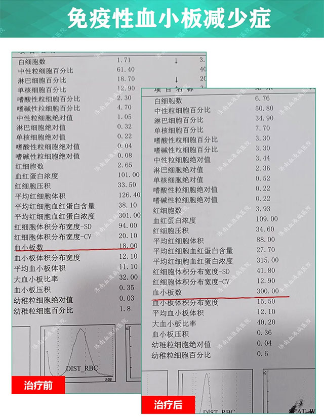 经过四个疗程治疗,多次复查他的血小板数值始终稳定在正常值,皮肤瘀斑明显消退,牙龈出血症状消失,精神状态显著改善,生活质量提升。