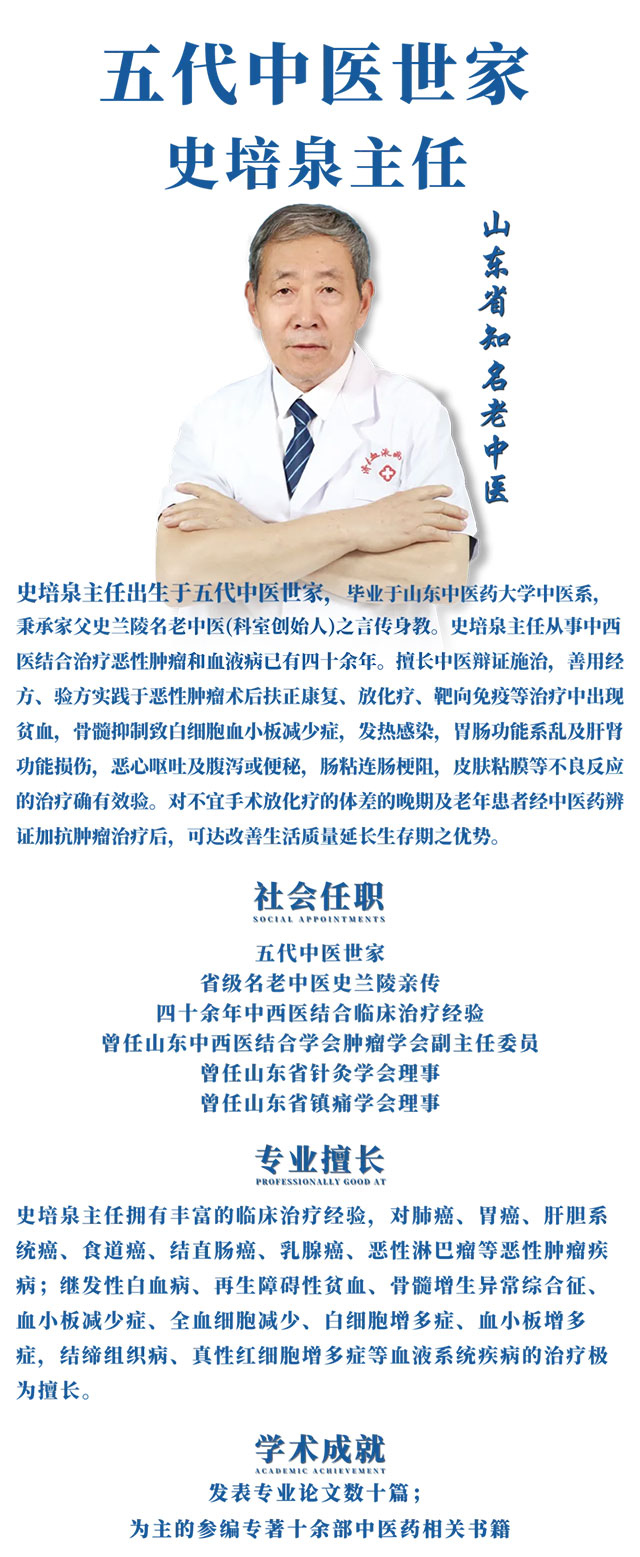作为五代中医世家的杰出传人,史培泉主任自幼浸润于中医典籍与临床实践中,深谙中医理法方药的精髓。家族传承的独特诊疗思路与验方,经他结合现代医学不断创新完善,使其在血液病诊疗方面形成了“辨证求因、精准施治、身心同治”的显著优势。